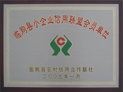 2009年1月,我公司被临朐县农村合作信用联社评定为临朐县中小企业信用联盟会员单位。