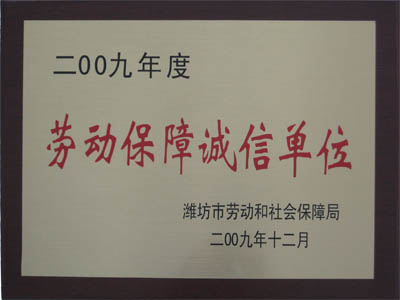 2009年12月,我公司获潍坊市劳动和社会保障局评定的劳动保障诚信单位的荣誉。