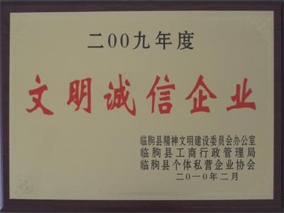 2010年2月,我公司被临朐县精神建设文委员会评定为二零零九年度文明诚信企业。