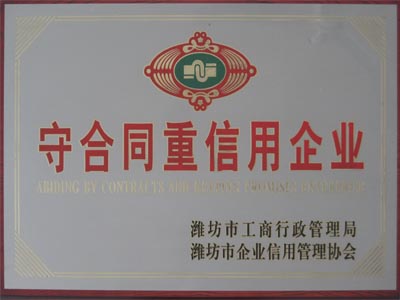 2011年6月,我公司被潍坊市工商行政管理局授予“守合同重信用企业”的称号。