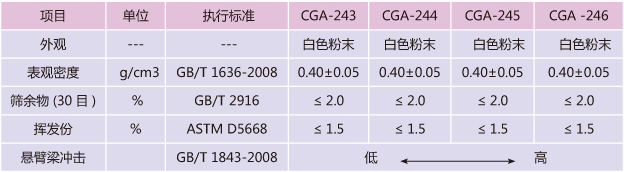CGA是我们公司研发的一种PVC用抗冲改性剂,该类产品是具有网络互穿结构的高分子聚合物,它的主要功能是提高PVC制品的低温冲击强度及制品的韧性,并有促进PVC物料塑化的功能,相对于其它普通PVC抗冲改性剂CGA系列产品能赋予PVC制品恰好的冲击机强度及韧性。