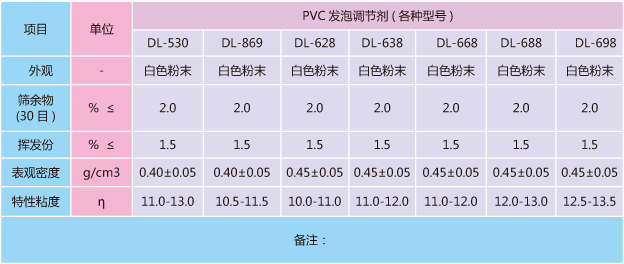 ● 8~15mm PVC发泡板用发泡调节剂:DL-638,DL-668
